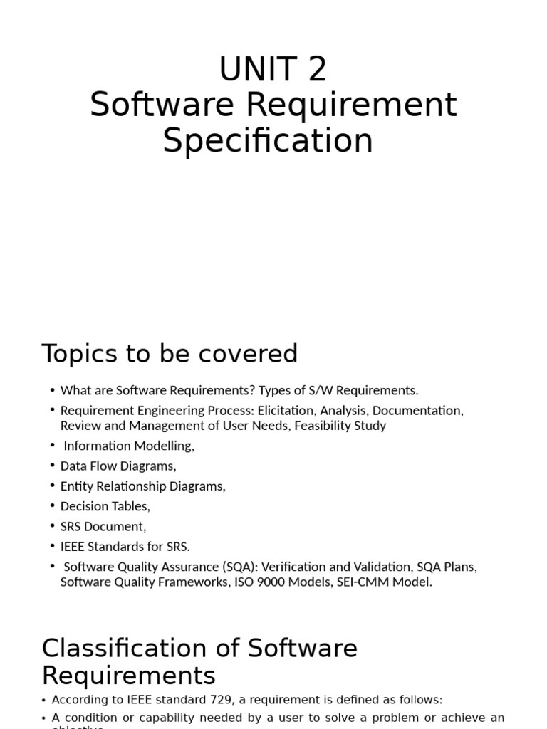 • IEEE Standards for SRS.