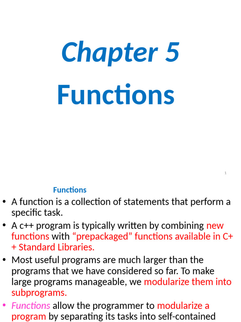 • Functions allow the programmer to modularize a