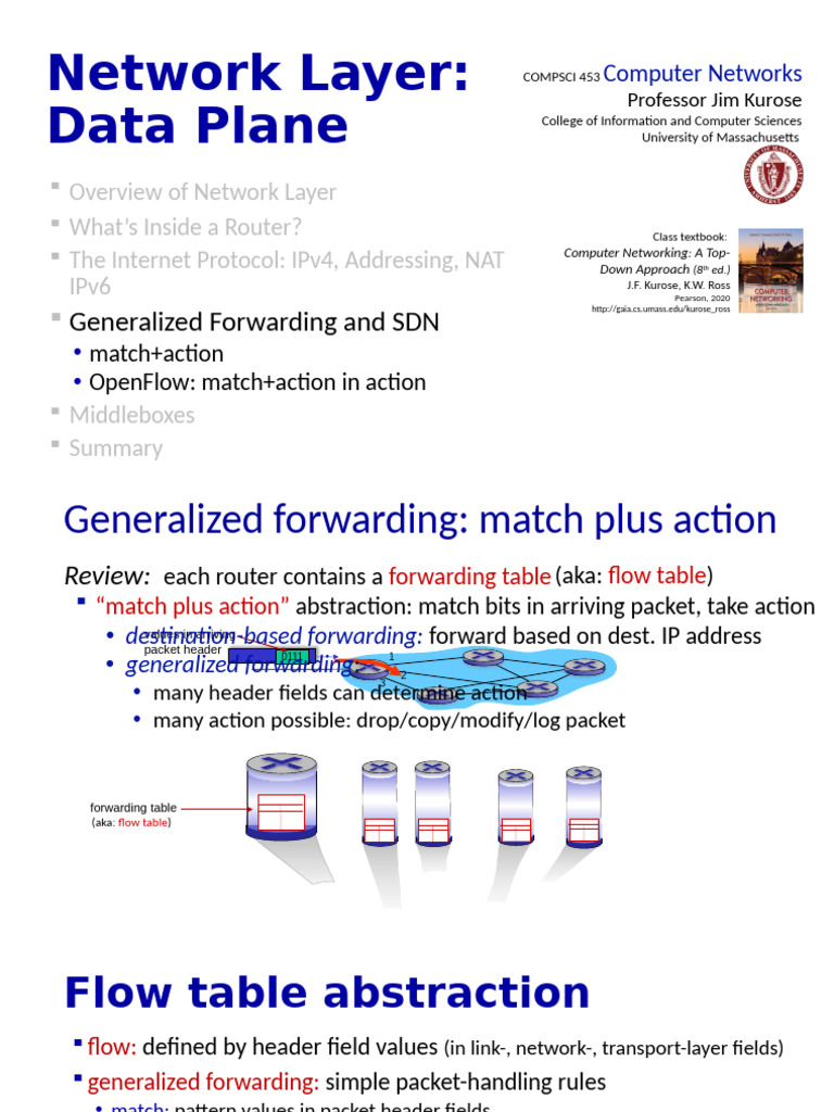 • actions: for matched packet: drop, forward, modify, matched packet or send
