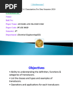 • Transducers are the devices that convert energy in one form into another form. Generally the