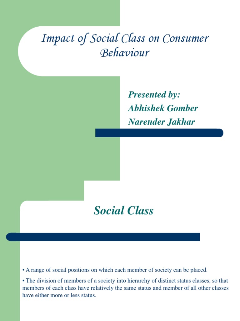 Upper-class are more future oriented and confident of their financial acumen, they are more willing to invest in insurance, stocks and real estate. Lower-class consumers are generally more concerned with immediate gratification, when they do save, they are primarily interested in safety and security. Lower class purchase tend to use their credit card to buy now and pay later for things they might not otherwise be able to afford, where as Upper class purchasers use their credit car as a convenient substitute for cash.