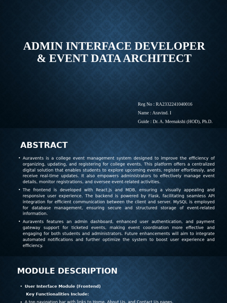 performance, and reliability. While the system already includes event registration, admin-side