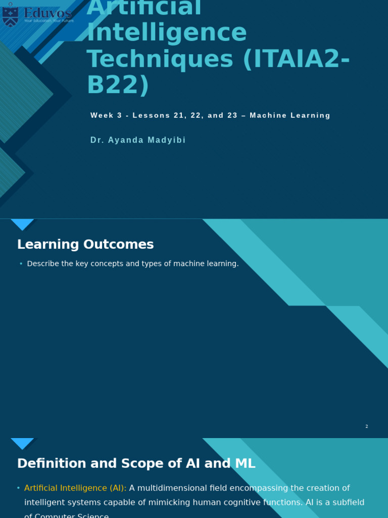 • Artificial Intelligence (AI): A multidimensional field encompassing the creation of