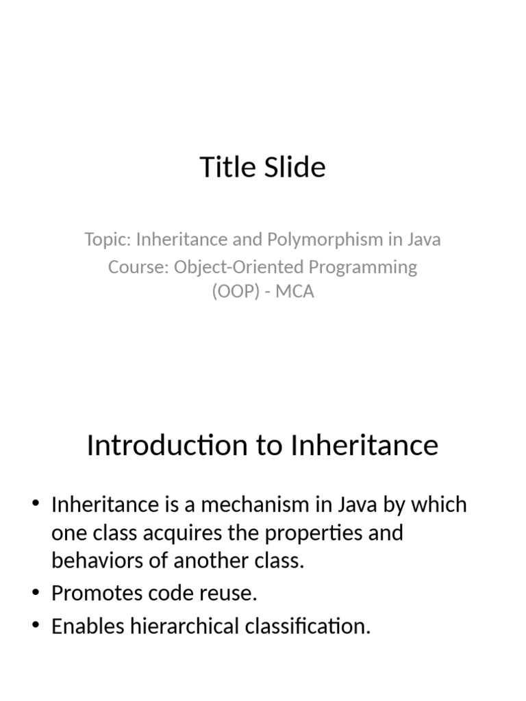 Topic: Inheritance and Polymorphism in Java