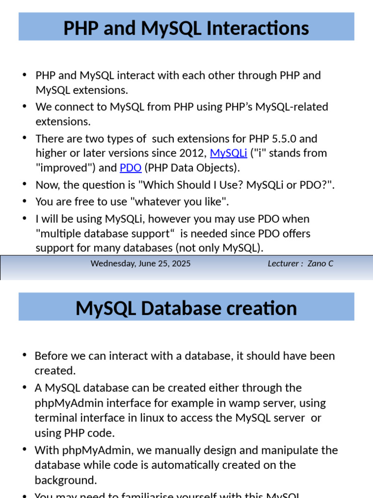 • I will be using MySQLi, however you may use PDO when