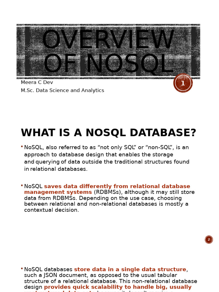NoSQL, also referred to as “not only SQL” or “non-SQL”, is an