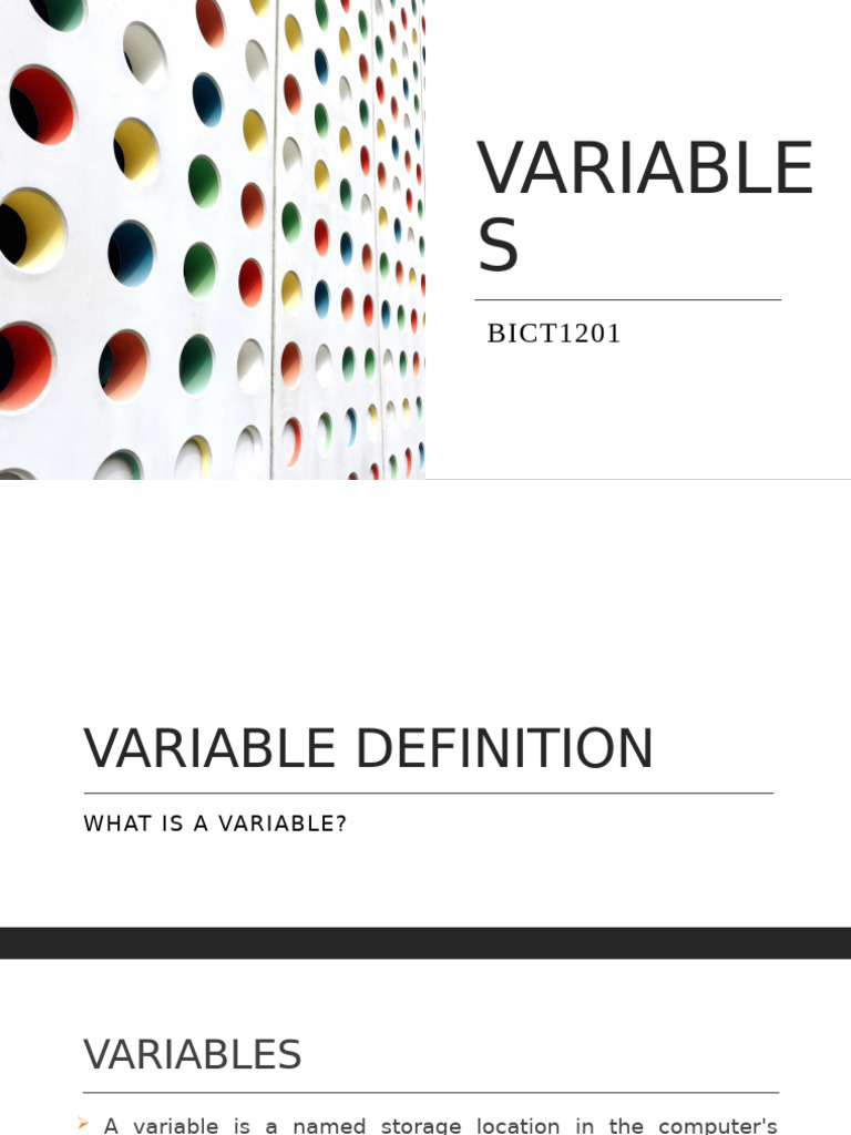 • Each variable has a defined data type (e.g., int, float, char) that determines the