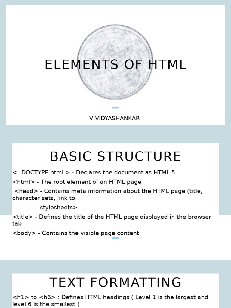 <h1> to <h6> : Defines HTML headings ( Level 1 is the largest and