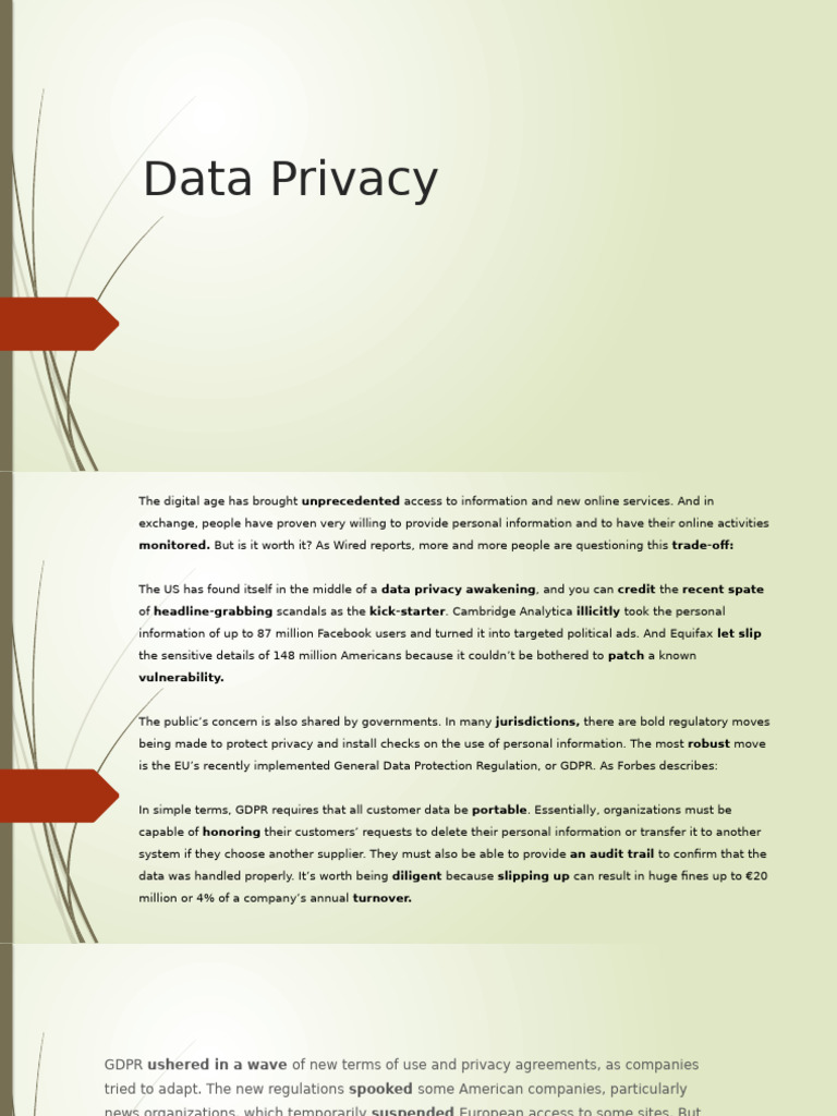being made to protect privacy and install checks on the use of personal information. The most robust move