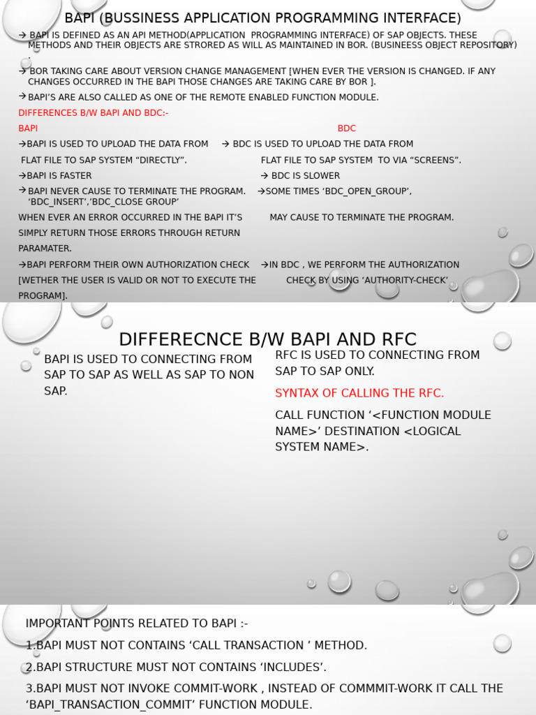 1.BAPI MUST NOT CONTAINS ‘CALL TRANSACTION ’ METHOD.