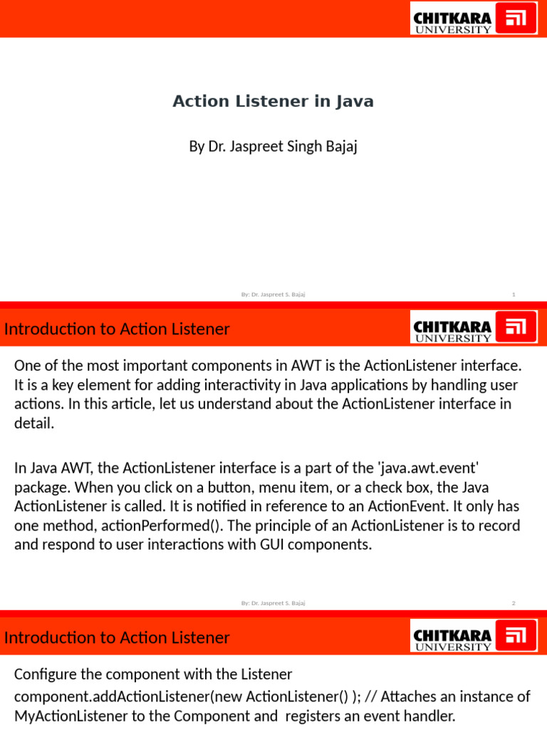 one method, actionPerformed(). The principle of an ActionListener is to record