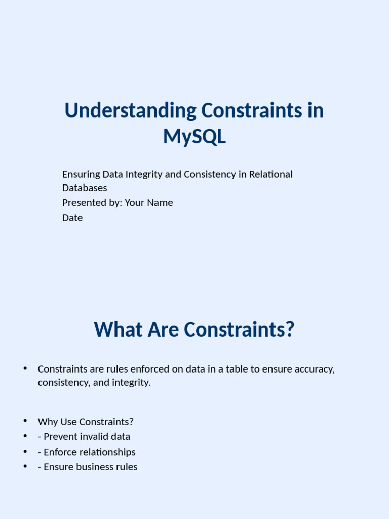 • Constraints are rules enforced on data in a table to ensure accuracy,