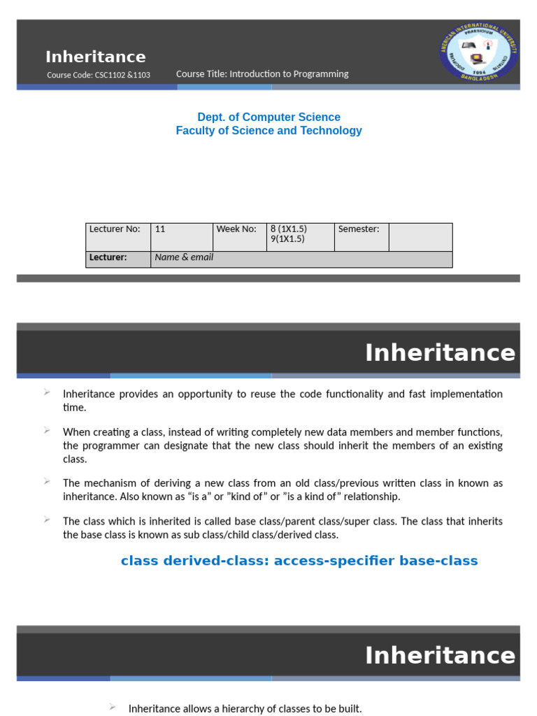 Course Code: CSC1102 &1103 Course Title: Introduction to Programming