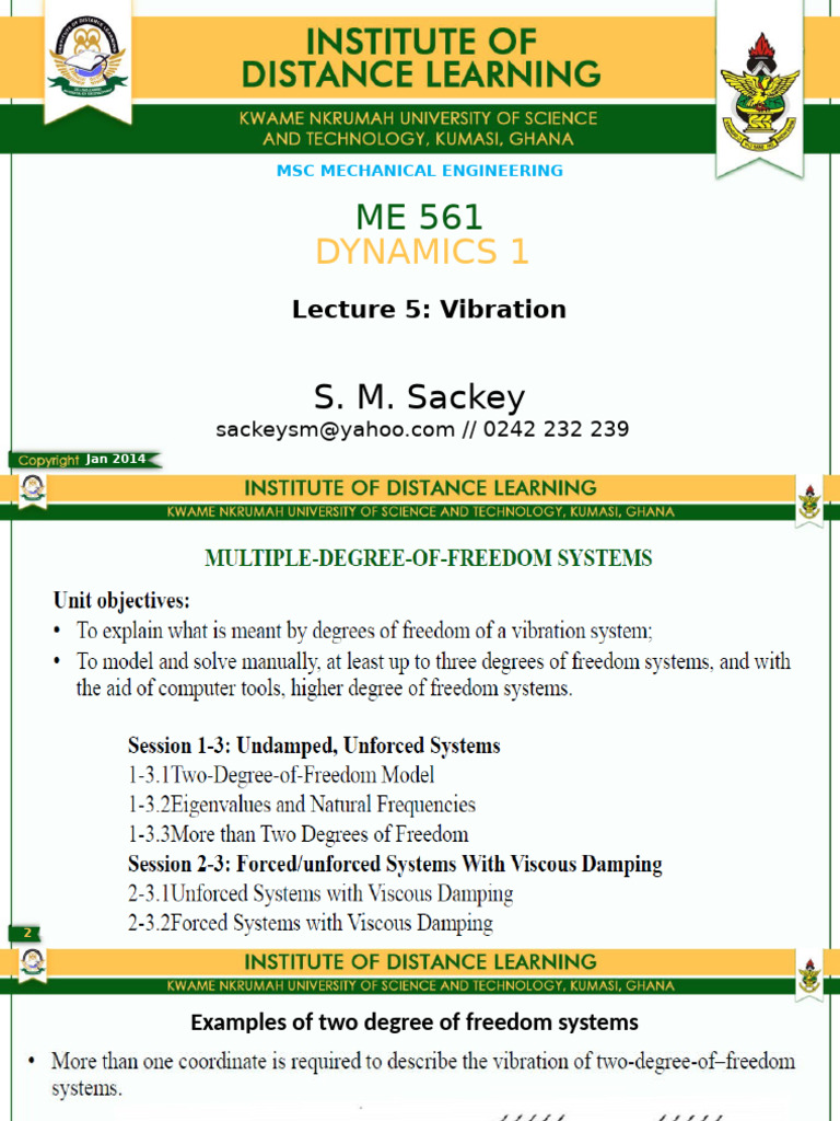 2 Figure 5.2 Damped two-degree-of-freedom system for example above