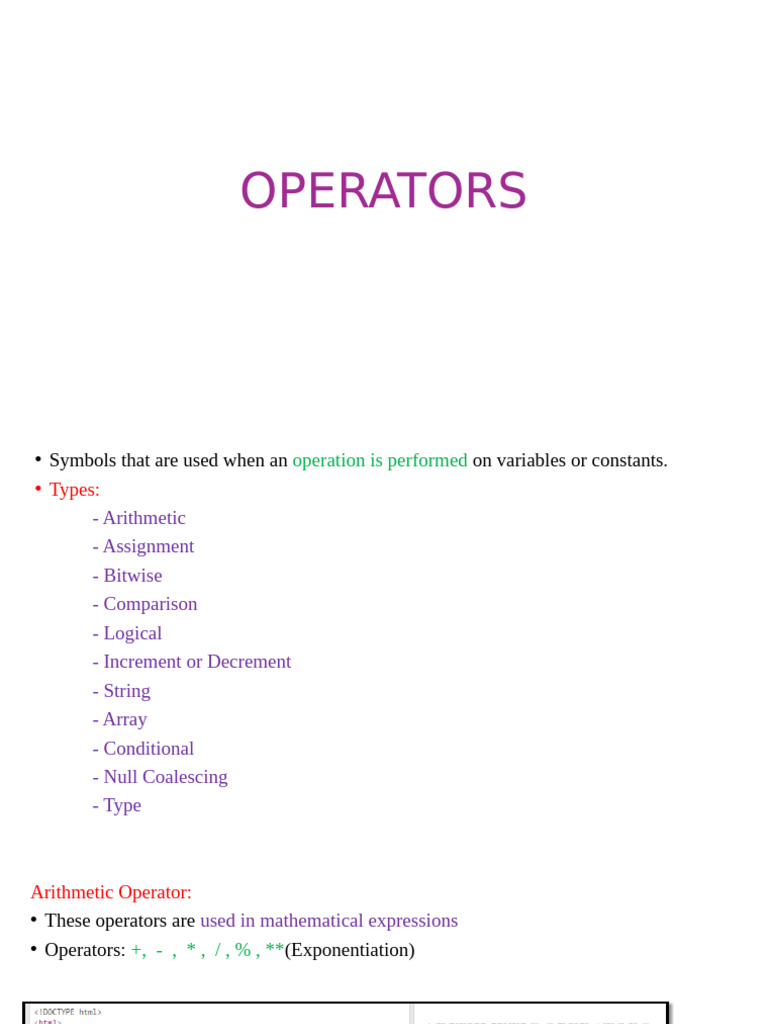 • Spaceship Operator: Returns an integer value between -1 to 1.
