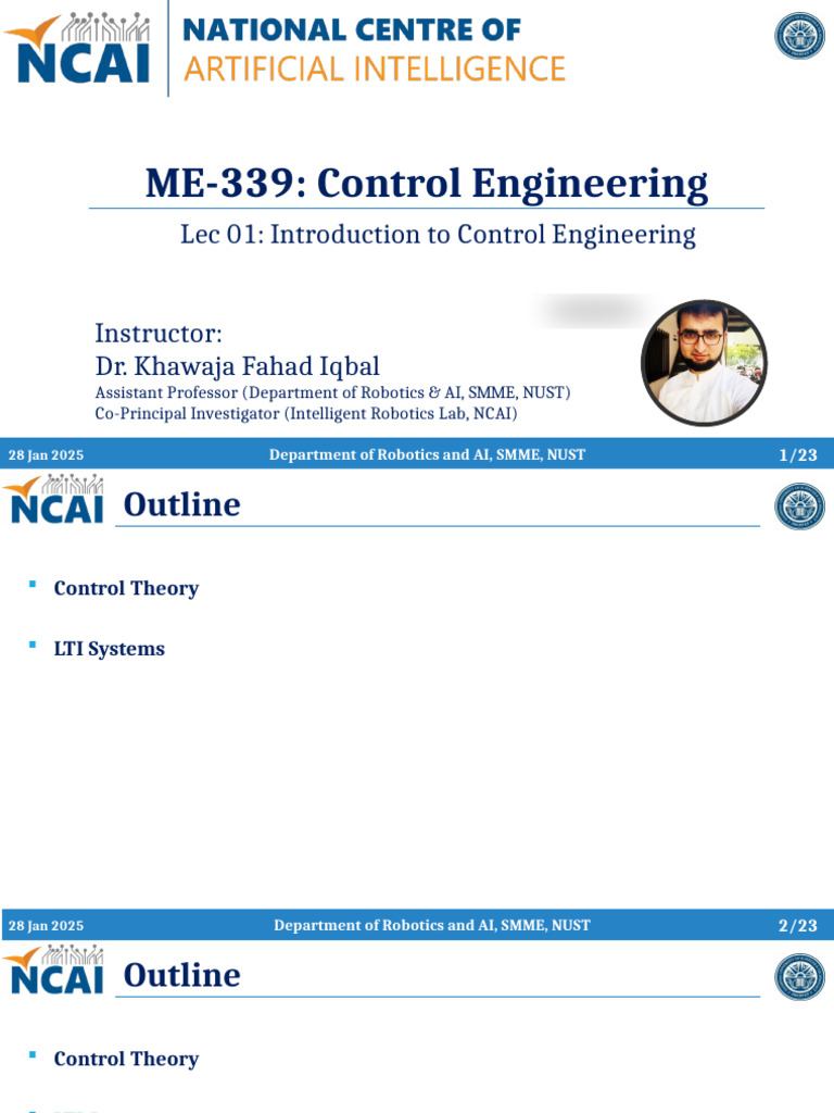 28 Jan 2025 Department of Robotics and AI, SMME, NUST 2/23