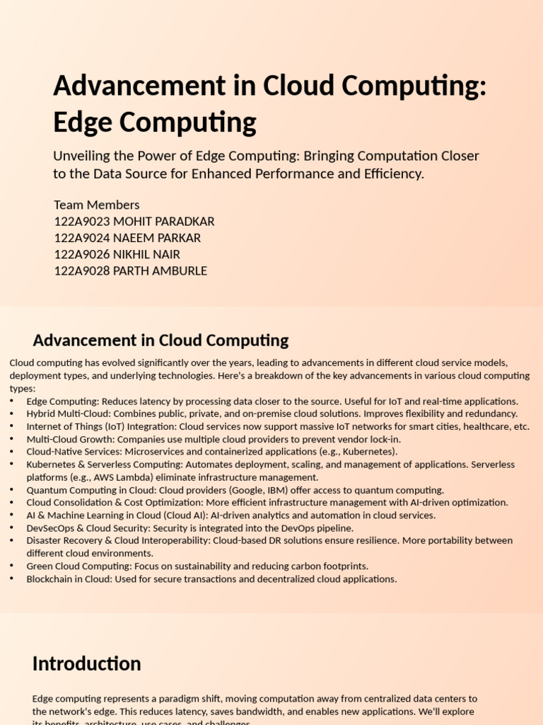 deployment types, and underlying technologies. Here's a breakdown of the key advancements in various cloud computing