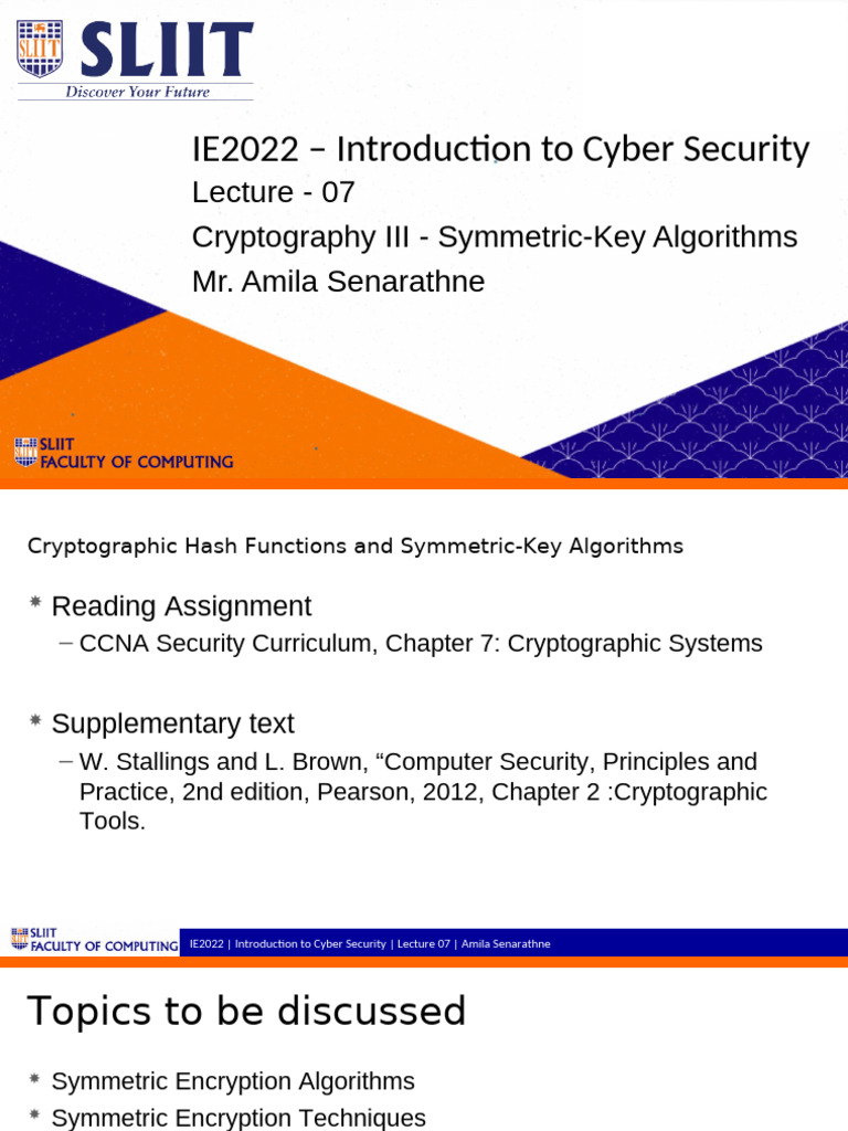 IE2022 | Introduction to Cyber Security | Lecture 07 | Amila Senarathne