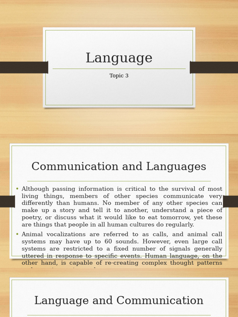 • Regardless of when humans acquired language, anthropologists generally agree that