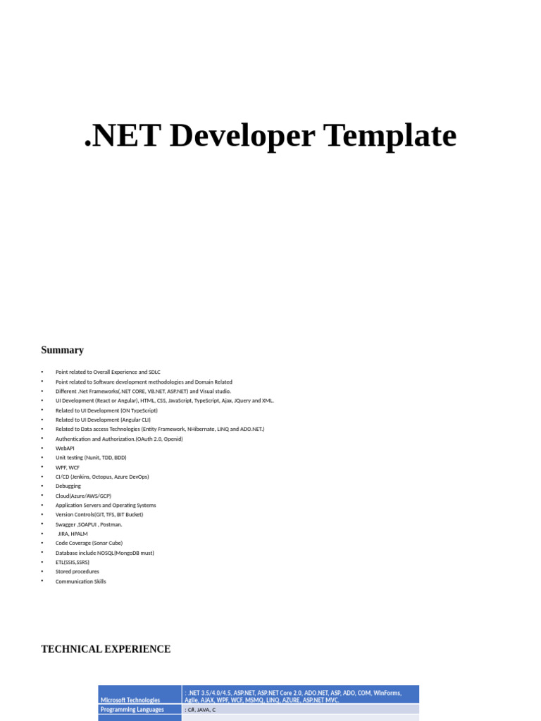 • Different .Net Frameworks(.NET CORE, VB.NET, ASP.NET) and Visual studio.