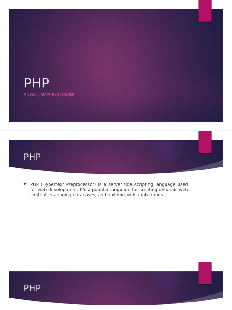 PHP (Hypertext Preprocessor) is a server-side scripting language used