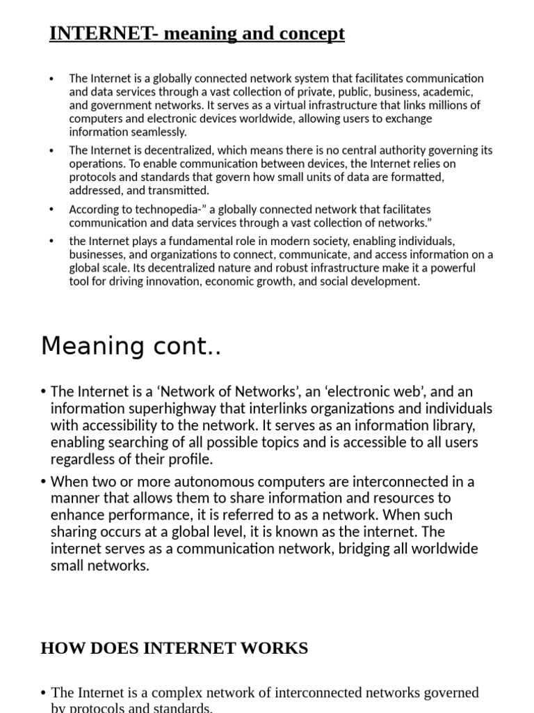 • The Internet is a ‘Network of Networks’, an ‘electronic web’, and an