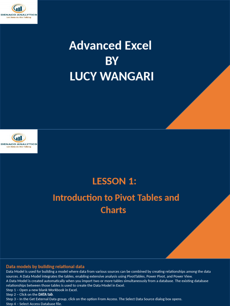 sources. A Data Model integrates the tables, enabling extensive analysis using PivotTables, Power Pivot, and Power View.