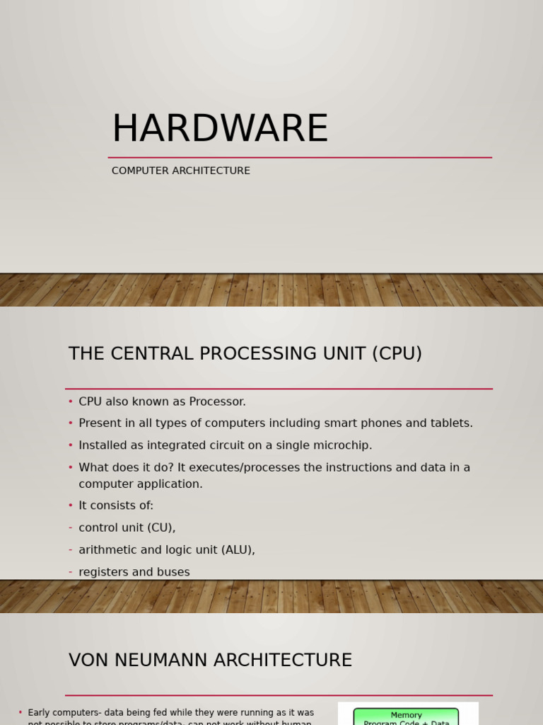 • Registers- one of the fundamental components of the Von Neumann system. They can be general