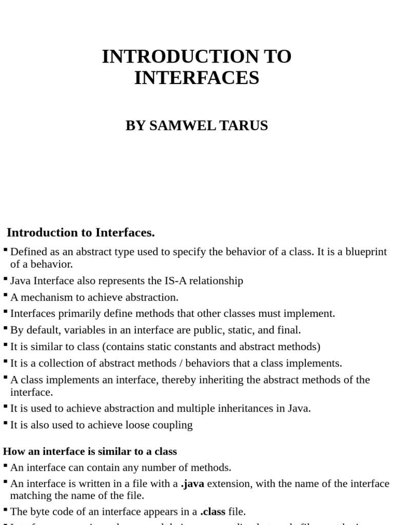 Defined as an abstract type used to specify the behavior of a class. It is a blueprint