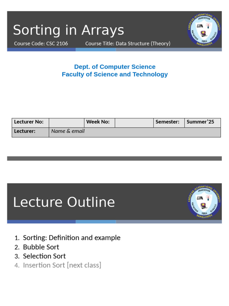 Course Code: CSC 2106 Course Title: Data Structure (Theory)