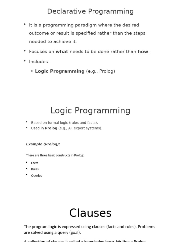 A collection of clauses is called a knowledge base. Writing a Prolog
