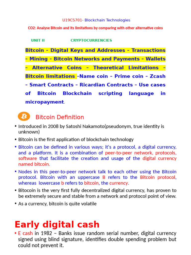 CO2: Analyse Bitcoin and its limitations by comparing with other alternative coins