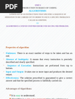 - Decisions – the algorithm might contain decisions or conditions at some point