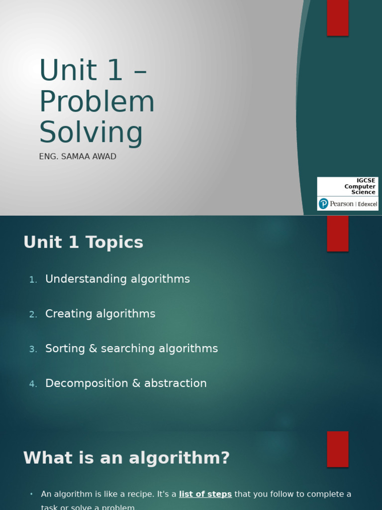 • Just like following a recipe to bake a cake, using an algorithm helps a