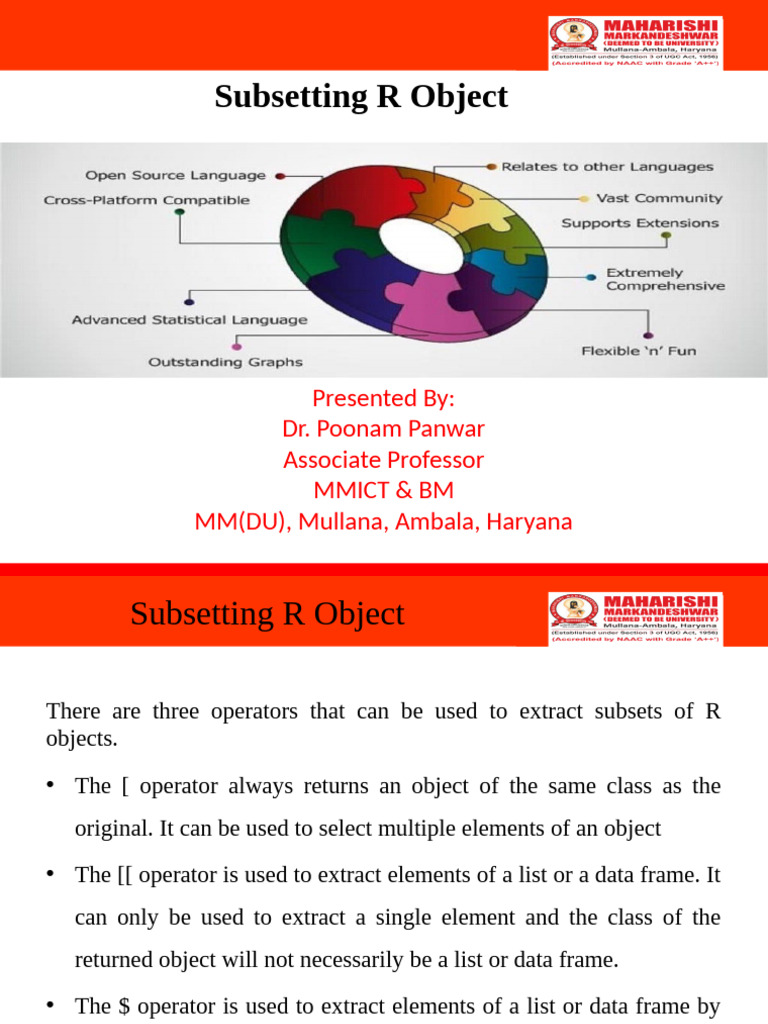 • The [[ operator is used to extract elements of a list or a data frame. It