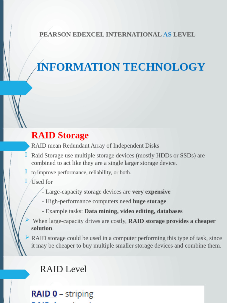 Raid Storage use multiple storage devices (mostly HDDs or SSDs) are