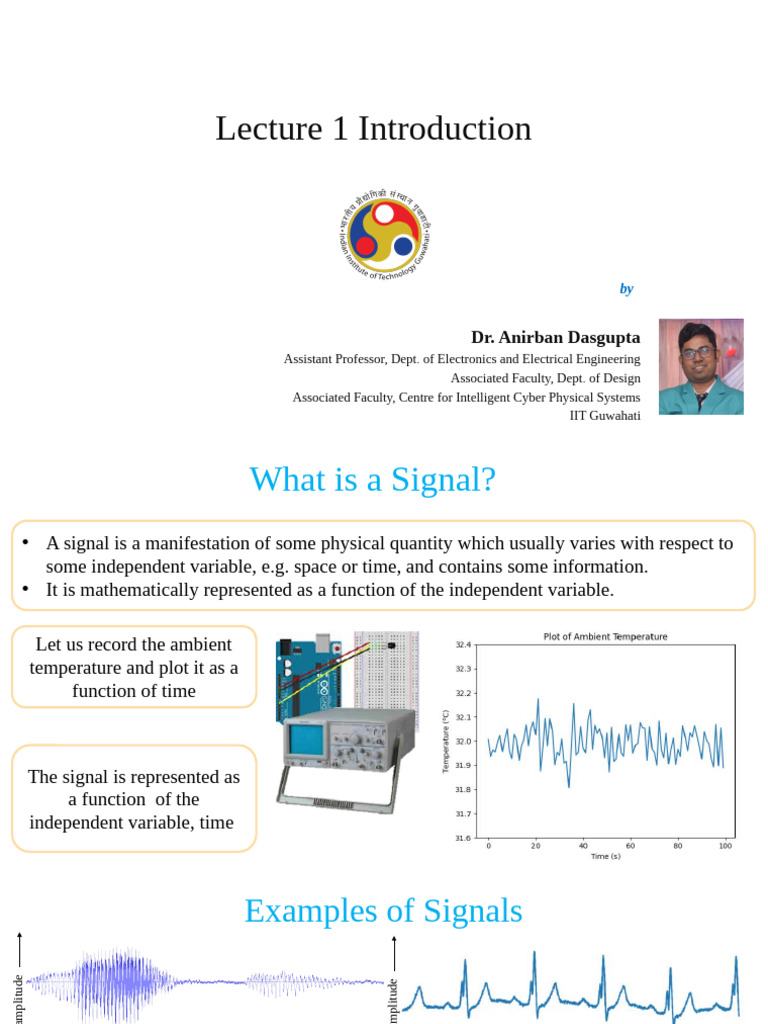 • A signal is a manifestation of some physical quantity which usually varies with respect to