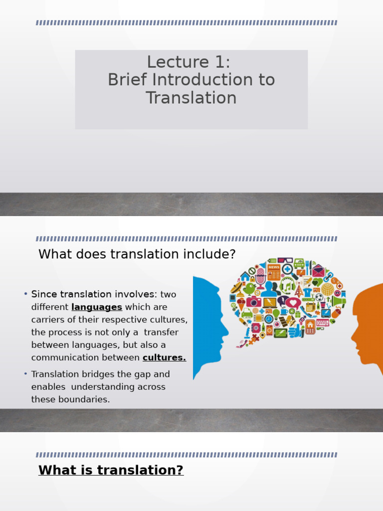 - First, the word "translation" was derived from a Latin phrase that means "to bring or carry across." Second, another explaining