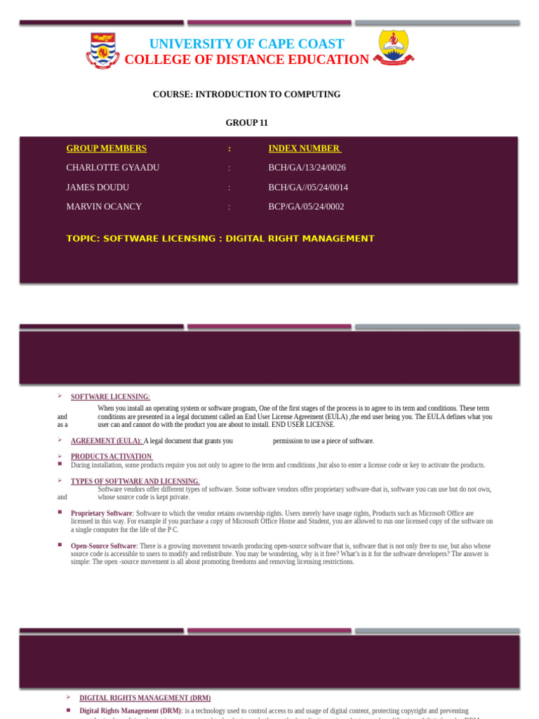TOPIC: SOFTWARE LICENSING : DIGITAL RIGHT MANAGEMENT