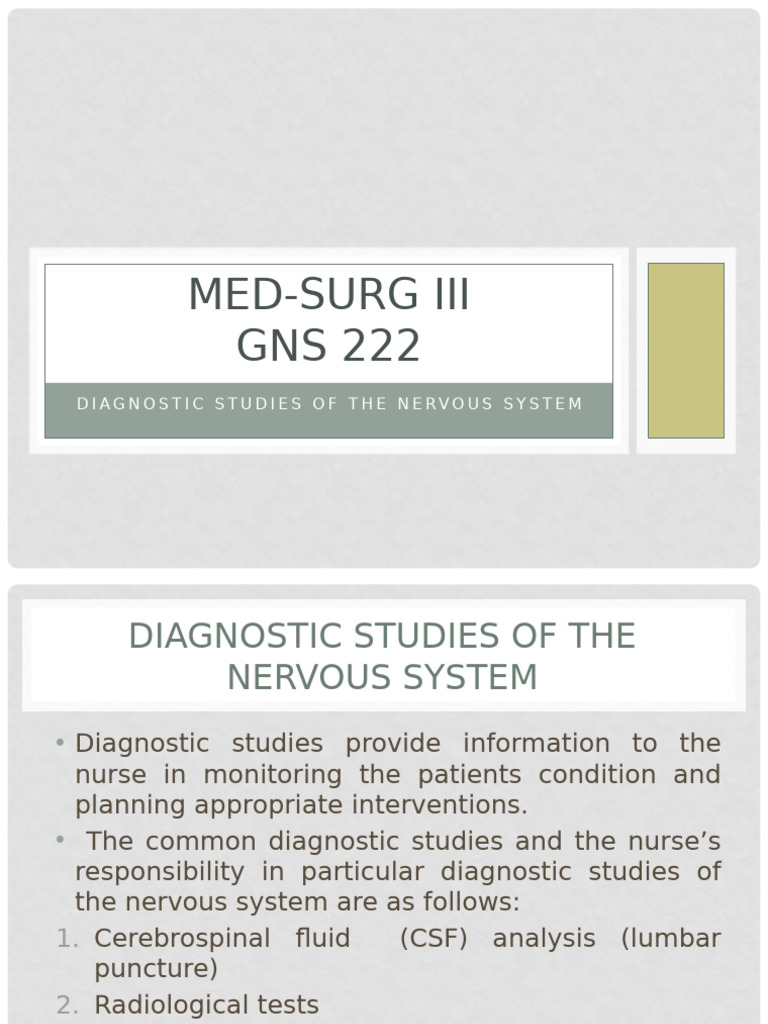 D I AG N O S T I C S T U D I E S O F T H E N E RVO U S S Y S T E M