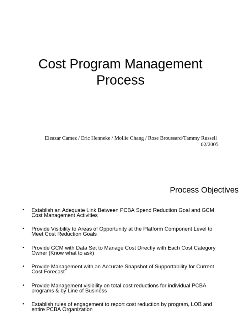 • Establish an Adequate Link Between PCBA Spend Reduction Goal and GCM
