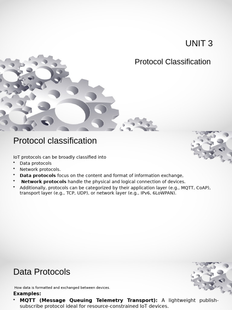 • Additionally, protocols can be categorized by their application layer (e.g., MQTT, CoAP),