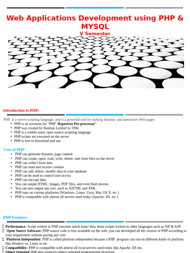 ⮚ File Management: PHP handles file uploads and creates file management systems for organizing and downloading files