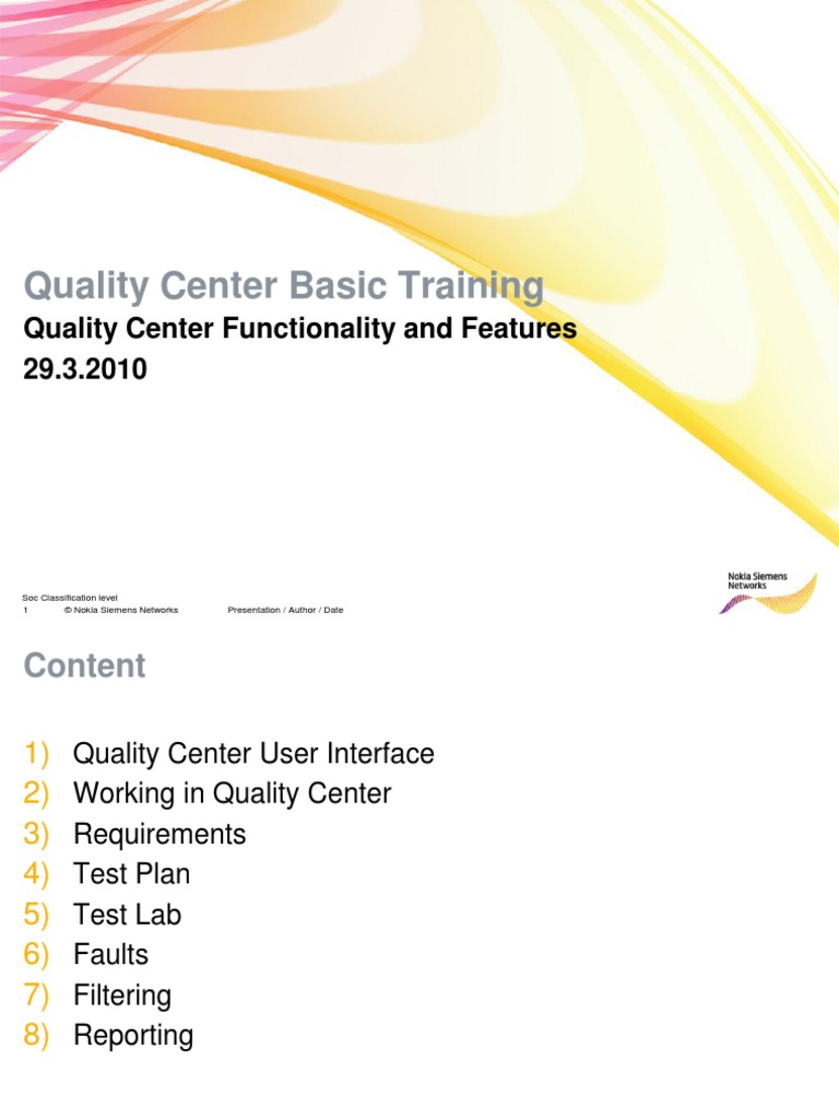 Quality Center User Interface Working in Quality Center Requirements Test Plan Test Lab Faults Filtering Reporting