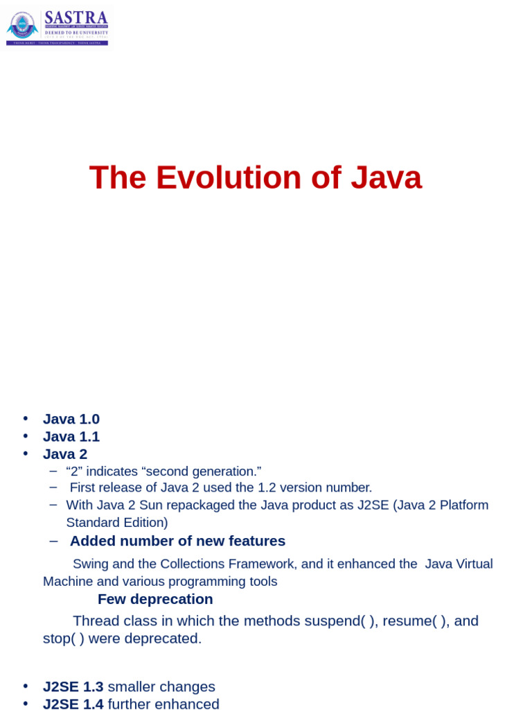– First release of Java 2 used the 1.2 version number.