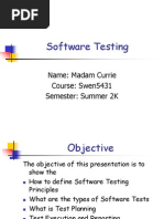 Unit Testing (White Box) Integration Testing Function Testing (Black Box) Regression Testing System Test Acceptance and Installation Tests