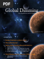We have learned that global dimming is the reduction in emittance of global solar radiation and that is mostly due to the use of aerosols and urbanization. It impacts our environment. There are ways to combat global dimming.