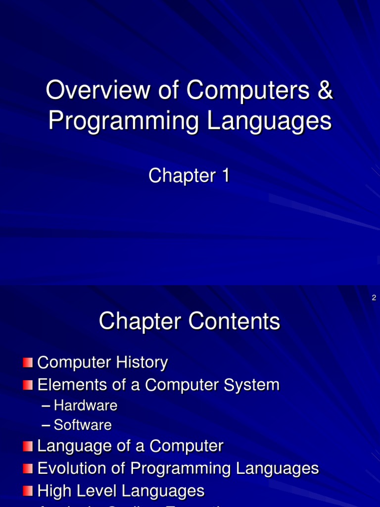 Language of a Computer Evolution of Programming Languages High Level Languages Analysis-Coding-Execution Object Oriented Programming