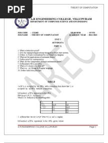 CS1303 Theory of Computation Question Alone