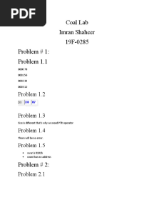 Coal Lab Imran Shaheer 19F-0285 Problem # 1: Problem 1.1